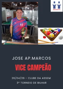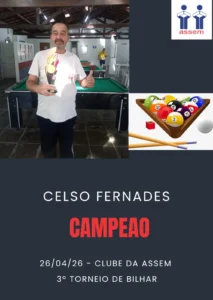 Um grupo de 22 associados participou no domingo (26), da 3ª etapa do Torneio de Bilhar 2026. A competição aconteceu no Salão de Jogos, do Clube de Campo.